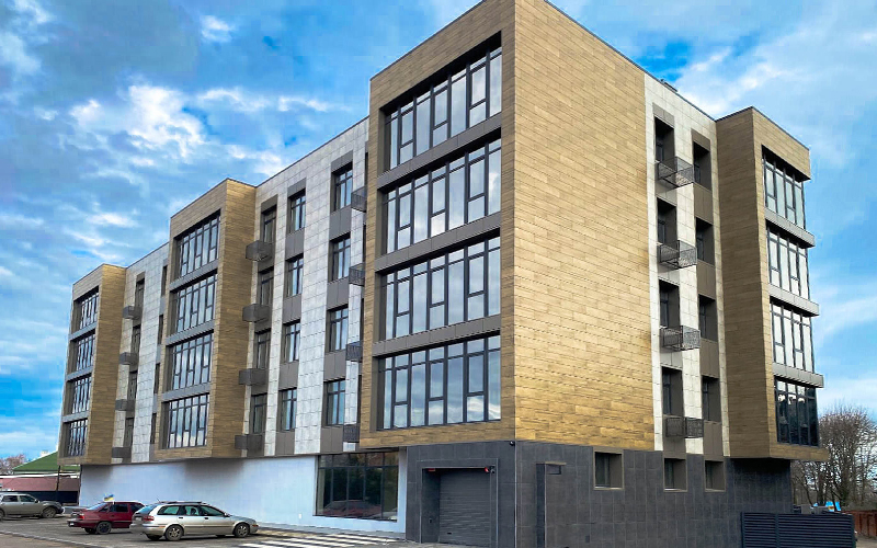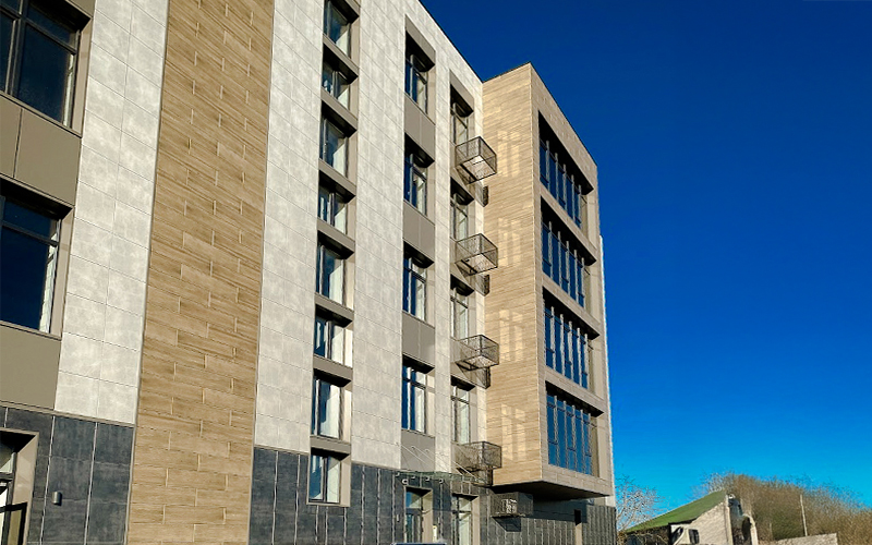 Широкий выбор облицовочных панелей — HPL, керамогранит, алюминиевые композиты и др.